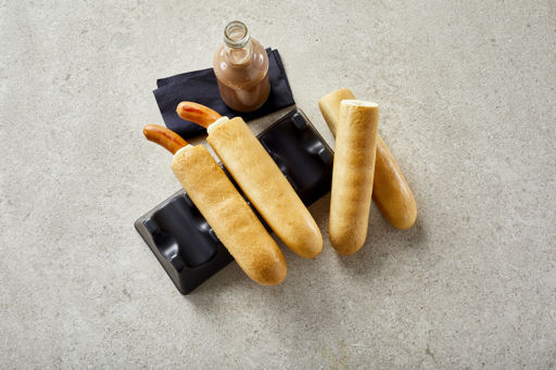 These baguettes with a big hole are a crisp classic for French hotdogs. We bake the crisp, French-inspired baguettes and freeze them before we cut off the top and bore the hole to get as fine a cut as possible without loose crumbs. The hole is made very carefully so that it does not go too close to the sides or the bottom of the baguette and damage the bread when the French hotdog is put together and eaten. Our baguettes with a hole are characterised by a beautiful golden colour and unique glow. Our baguettes have a hole measuring 24 millimetres that is perfect for standard sausages.