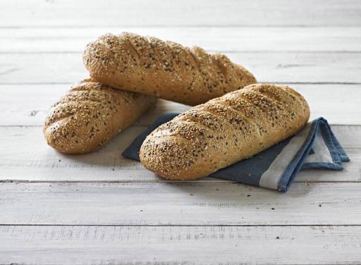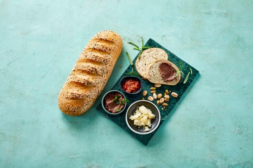 The 3 Grain Loaf contains wholemeal wheat flour and the three types of grain that give the bread its name are rye flakes and flax and sesame seeds. The three-grain mixture combined with an aromatic sourdough provides delicious and moist bread with a nicely balanced taste. The 3 Grain Loaf bears the Nordic Keyhole symbol.