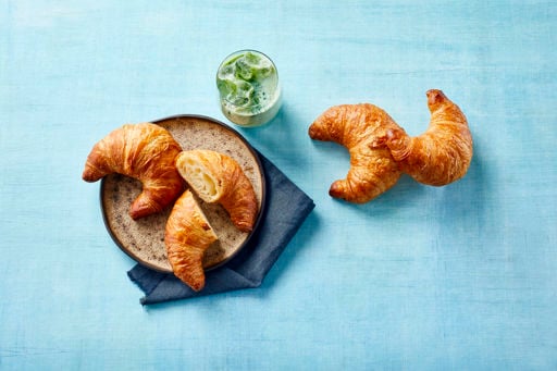 Our All Butter Croissant is a round croissant baked from light, crisp layers of original, butter-based croissant pastry. The pastry has been allowed to develop naturally while it rests for a long period of time which contributes to making the croissant light and airy. The croissant is brushed with egg which gives it a beautiful golden surface colour.