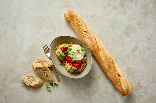 The Baguette Rustic Durum Bun is made with a very soft and moist dough with lots of durum flour to give the buns an open, chewy and very sturdy crumb. As the baguettes are baked in a stone oven, the crust is crisp and crunchy. The baguettes also contain sourdough to give them the rich flavour of bread.