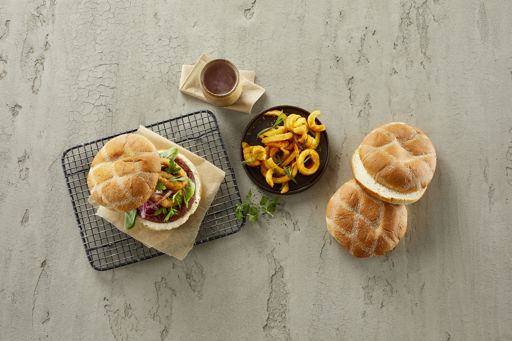 Buffalo Burger Buns are our extra large, deliciously soft, precut and baked with sourdough to give a denser crumb. The bread is characterised by a wheat flour-sprinkled pattern that ensures that both taste and appearance are something special. The bun measures approx. 130 millimetres in diameter.