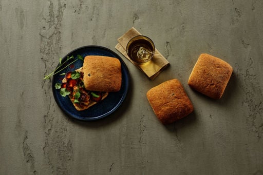 Precut chilli buns are our most popular sandwich rolls. The buns are baked with pieces of red and green pepper, chilli and basil and sprinkled with barbecue spices that include chilli, oregano and garlic. The buns have a dense crumb which makes them ideal for sandwiches. The crust is soft and also tailor-made for sandwiches.