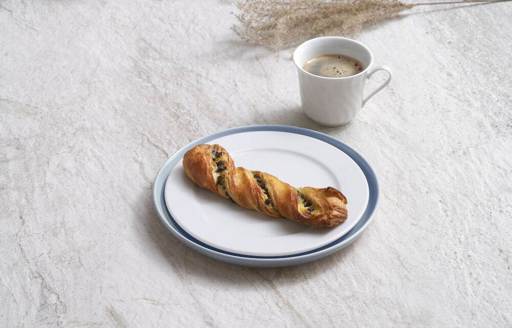 A light, flaky, French pastry, presented in its traditional and authentic shape, crafted by hand-twisting pastry, with indulgent chocolate chips and a vanilla custard cream.