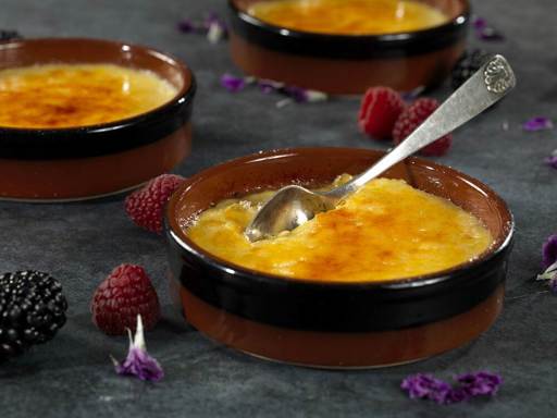 Thaw over night in the fridge. Add a thin layer of sugar and caramelize with a burner. Repeat three times. Let the product rest a few minutes before serving.