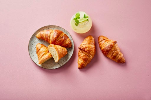 Classic croissant baked from light and crispy layers of croissant dough. The dough has been allowed to develop naturally during a long resting period, making the croissant light and airy to eat. The croissant is brushed with egg, giving it a beautiful, golden surface. A carton contains 2 bags with 24 pieces in each bag.
