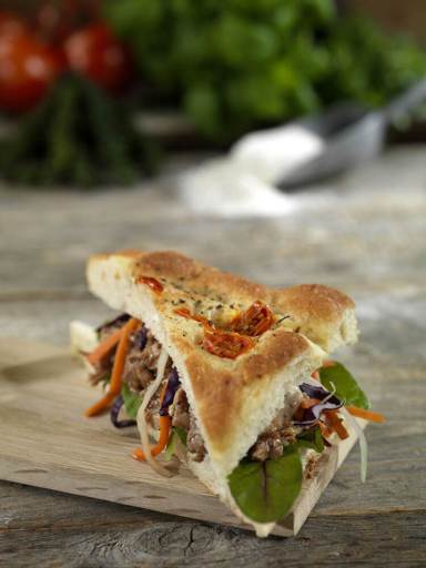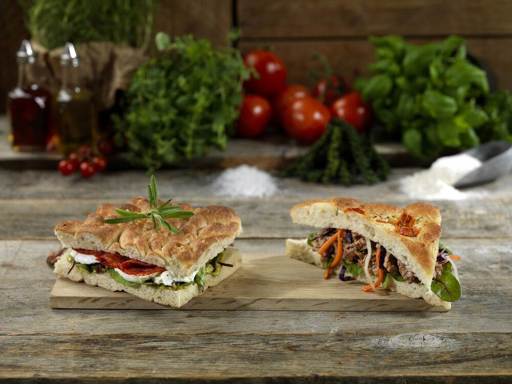 WHEAT flour, water, tomatoes 8%, rapeseed oil, iodised salt, yeast, sugar, dried RYE sourdough, RYE flour, malted WHEAT flour, oregano, malted BARLEY flour, acidity regulator (E330, E270, E260), emulsifier (E472e), flour treatment agent (E300). May contain traces of egg, soya, milk, sesame seeds.