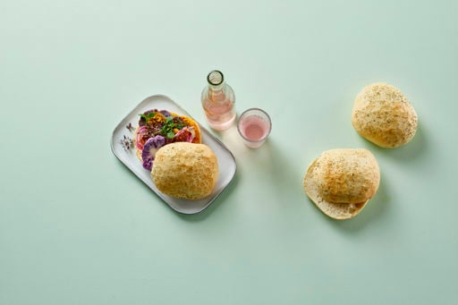 The Foccacia Sandwich Roll is a precut, round Italian-inspired sandwich roll. The roll has a soft and moist crumb and a thin, fine crust which is sprinkled with rosemary. The rolls are baked in a stone oven to give them a home-baked appearance.