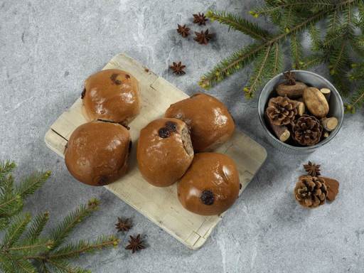 Defrost on tray covered with plastic overnight in the refridgerator. The buns must be proofed at 37°C in 40-50 minutes. Bake at 180-190° C for 8-10 minutes.