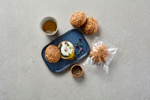 A single-packed, gluten-free roll consisting of cornflour, rice flour, soy protein, psyllium husks and sunflower, pumpkin, sesame and flax seeds. The rolls are of a very high quality, and match classic breakfast rolls in terms of eating experience. One carton contains 36 bags with 1 piece in each bag.