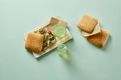 WHEAT flour, water, sugar, rapeseed oil, durum WHEAT flour, Parsley 1%, iodised salt, onion 1%, yeast, chives 0,2%, dried peppers 0,1%, emulsifier (vegetable E471), WHEAT malt flour, flour treatment agent (E300). May contain traces of sesame seeds.