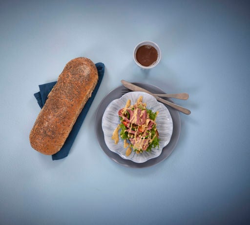 Wholegrain WHEAT flour (44.8%), water, OAT (6.6%), sourdough (WHEAT flour, water), chia seeds (2.6%), WHEAT gluten, RYE kernels(2%), rapeseed oil, WHEAT flour, salt, flour treatment agent (E300), yeast, enzyme (WHEAT).