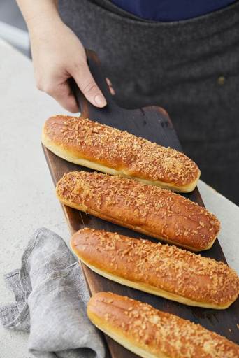 WHEAT Flour (with Calcium, Iron, Niacin, Thiamin), Water, Unsalted Butter (MILK) (8%), Free Range EGG, Sugar, Yeast, Glaze (Water, Vegetable Protein, Sunflower Seed Oil, Dextrose, Maltodextrins, Maize Starch), Skimmed MILK Powder, Salt, Emulsifier (E472e), Flour Treatment Agent (E300). For allergens, including cereals containing gluten, see ingredients in CAPITALS. May contains sesame seeds.