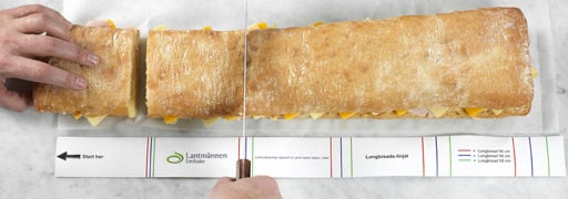 Long white bread for sandwichmaking.