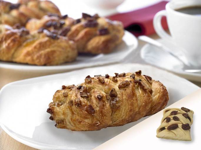 Directly from frozen into pre-heated oven at 190°C (convection oven). Bake for 18 minutes. Ovens vary, so adjust temperature, not time. Apply syrup right after baking. Baked products to be consumed within 24 hours.