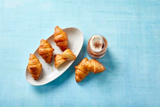 Dough: WHEAT flour, water, palm oil, sugar, yeast, BUTTER, coconut oil, salt, rapeseed oil, WHEAT gluten, emulsifier (E471), acidity regulator (E330), natural flavouring, flour treatment agent (E300), enzyme (amylase, xylanase), EGG. Decoration: EGG. May contain traces of: hazelnuts, almonds.