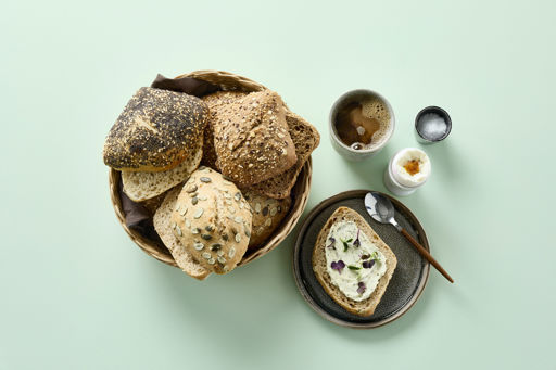Skagen Roll 90 g: WHEAT flour, wheat sourdough 10% (WHEAT flour, water, sourdough culture) sunflower seeds 9%, poppy seeds 6%, water, SESAME seeds 3%, yeast, iodised salt, rapeseed oil, flour treatment agent (E300). Dark Grain Roll 80 g: WHEAT flour, rye sourdough 13% (RYE flour, water, sourdough culture), water, sunflower seeds 7%, linseeds 5%, OAT flakes 3%, yeast, SESAME seeds 2%, iodised salt, BARLEY malt extract 1%, sugar, rapeseed oil, flour treatment agent (E300). Light Pumkunseeds Roll 100 g: WHEAT flour, wheat sourdough 14% (WHEAT flour, water, sourdough culture), pumpin seeds 13%, rye sourdough 12% (RYE flour, water, sourdough culture) RYE flour 7%, water, yeast, iodised salt, flour treatment agent (E300). May contain trace of egg, soya, milk, walnuts, hazelnuts, almound.