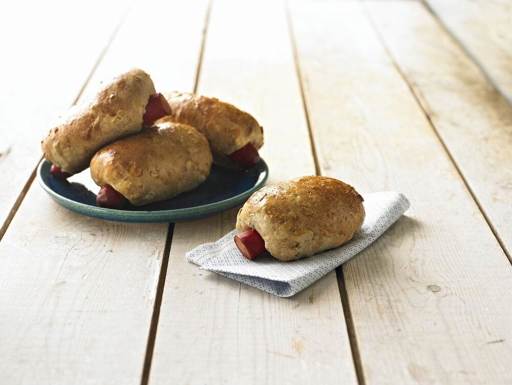 Organic Wholemeal Buns bearing the Nordic Keyhole symbol and baked with wholegrain wheat flour and rye flakes. These coarse buns are fully formed and can be used as they are – or they can be pressed flat and rolled around sausages as quick sausage rolls.