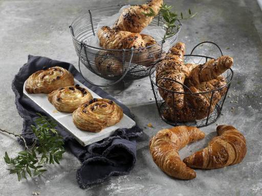 Dough: WHEAT flour, Butter (MILK) (14,4%), water, yeast, sugar, WHEAT gluten, salt, flour treatment agent (E300, enzyme), EGG. Filling: (raisins (11,6%)), water, sugar, thickening agent (E1414), EGG, whole MILK powder, whey powder (MILK), whole EGG powder, Natural Vanilla Flavouring with other Natural Flavourings, colour (E160aiii), vanilla seed, vanilla extract. Decoration: EGG. May contain traces of: hazelnuts, almonds.