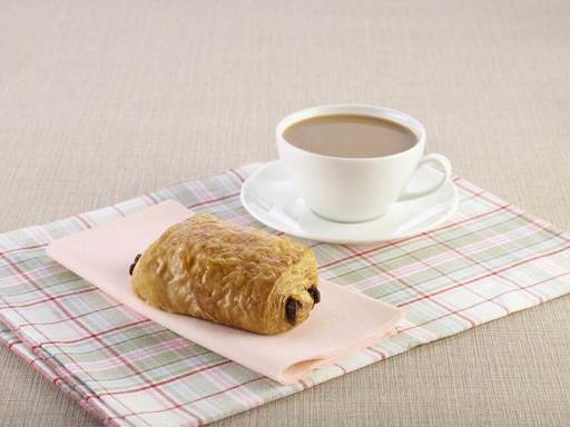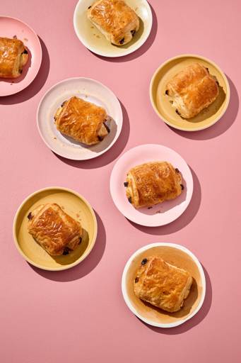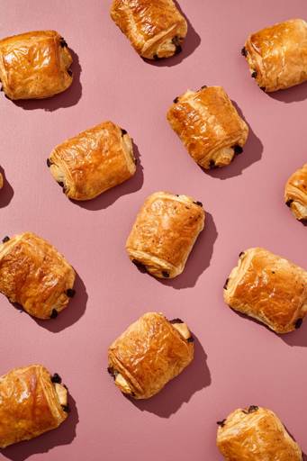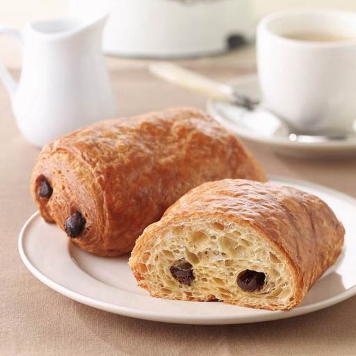 A classic chocolate roll. Filled with dark Belgian chocolate. The 16 layers of dough and preparation with real butter make it crispy, airy and smooth. The chocolate roll weighs 75 grams.