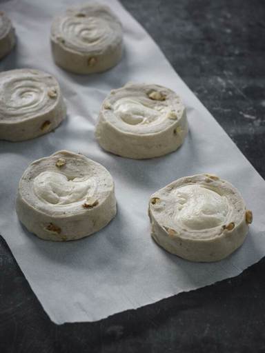 Thawed in refrigerator over night. In roomtemperature for 1,5 hour. Baking instruction: Bake in a preheated oven at 220°C for 5 minutes after defrosting. May also be baked in a Merychef oven (high speed oven) for 1,5-2 minutes after defrosting.