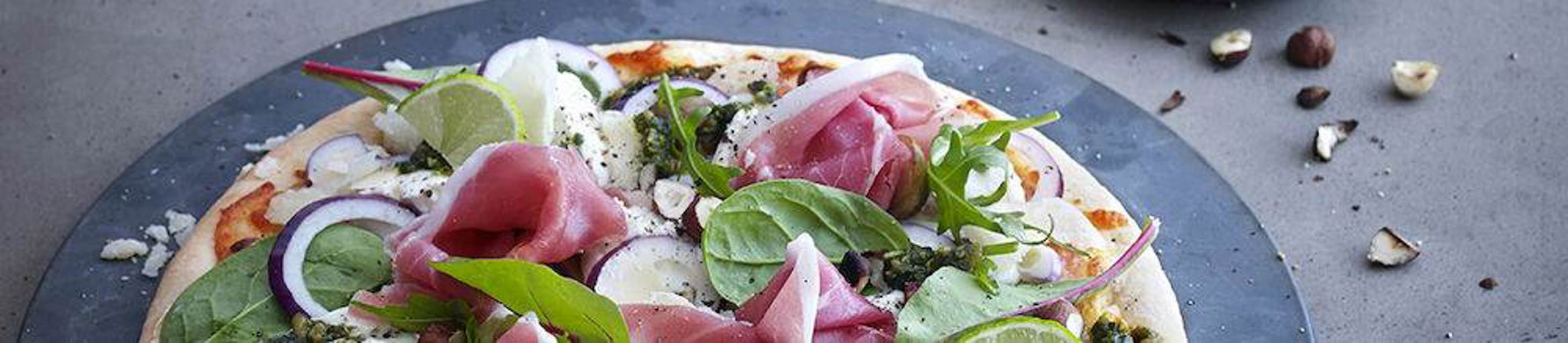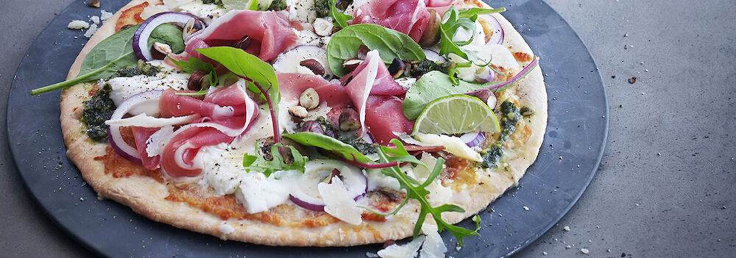 Authentic Italian Pizzacrust baked in a wood -fired stone oven. Topped with a tasty tomatosauce.