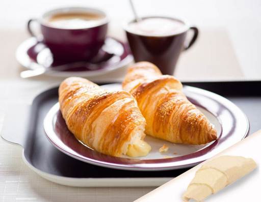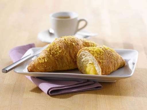 A frozen croissant with real butter, filled with custard cream, that still has to be baked after defrosting.