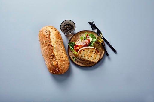 The Pumpkin Seed Wholemeal bread is baked in a stone oven with white wheat which is wholegrain wheat flour to provide the traditional and characteristic mild flavour, soft consistency and light appearance of wheat bread as some of the bitter substances and the dark hue of the bran have been removed. The bread also bears the Nordic Keyhole symbol.