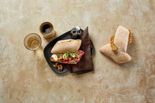 The Rustic Sandwich Roll is precut and baked from wholegrain wheat flour, rye flakes and sourdough. Barley malt extract gives the rolls their dark colour to emphasise their coarse profile. The rolls bear the Nordic Keyhole and Danish Wholegrain symbol, are baked in a stone oven and cut with slanted ends to produce a sandwich that seems bigger.