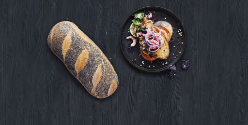 WHEAT flour, water, wholegrain WHEAT flour 6%, poppy seeds 3%, palm and rapeseed oil, iodized salt, sugar, dried sourdough (WHEAT flour, starter culture), yeast, WHEAT gluten, RYE flour, emulsifier (vegetable E472e), WHEAT malt flour, enzymes (WHEAT), flour treatment agent (E300). May contain traces of sesame seeds and walnuts.