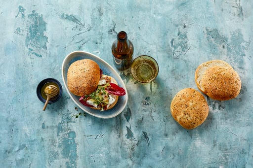 Sandwich bun baked in stone oven with flakes of potato and a sprinkle of sesame on the top. Crumb as well as crust has a light and soft character with a short bite. This makes the bun easy to eat and maintains freshness and quality after preparation. A perfect sandwich bread that brings out the best of all ingredients. Pre-cut and ready for use after thawing