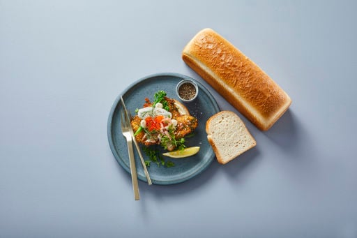 The Tin-baked Loaf is a traditional light bread with a moist and firm crumb texture. The crust is crisp and delicious. The Tin-baked Loaf can be eaten for any meal with any kind of topping.