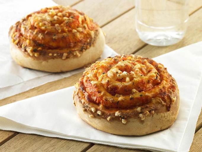 WHEAT Flour (Flour treatment agent (Ascorbic acid (E300)), Tomato Filling [21.0%] (Water, Tomato [15%]*, Tomato Puree [12,5%]*, Onion, Dried Onions, Tapioca Starch, Rice Starch, Sunflower Oil, Natural Flavouring (contains CELLERY), Hydrolysed Vegetable Protein, Salt, Colour (Paprika Extract (E160c)), Lemon Juice Concentrate, Garlic Powder, Black Pepper), Water, Gouda Cheese [12.0%] (MILK), EGG, Sugar, Yeast, Bechamel Sauce (MILK Powder, Maize Starch, Powdered EGG White, Salt, Thickener (Xanthan Gum E415), Glucose Syrup, Sugar, Garlic Powder), Rapeseed Oil, Salt, Dried WHEAT Sourdough, Potato Starch, Basil, Garlic, Flour treatment agent (Enzymes (Hemicellulase, Alphaamylase))). *corresponds to 3% Tomato and 2.5% Tomato Puree in the whole product. For allergens, including cereals containing gluten, see ingredients in CAPITALS. May also contain traces of nuts, sesame seeds, mustard and soya.